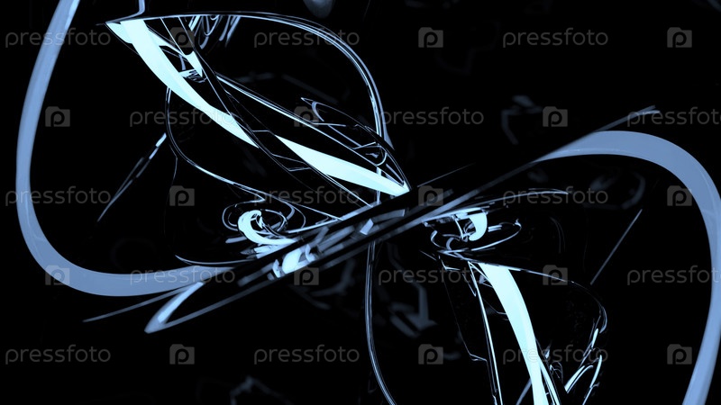 Абстрактный элегантный магический фон с изгибающимися металлическими линиями. Дизайн. Скручивающая сложная 3D-фигура на черном фоне