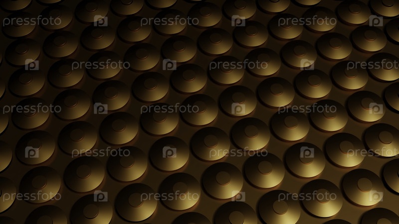 Концепция футуристической поверхности с движущимися выпуклыми круглыми формами. Дизайн. Тренди научно-фантастический технологический фон с металлической золотой сеткой