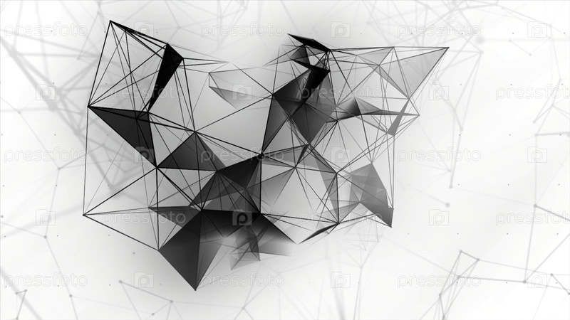 Красивая абстрактная многоугольная поверхность, движущаяся в анимации.Движение.Черно-белые треугольники создают кубическую фигуру