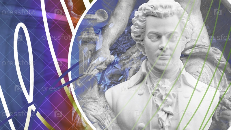 Фон с узорами.Движение.Анимация на ярком фоне с различными старинными скульптурами, портретами и появляющимися разнообразными световыми линиями и цветными кругами.Высокое качество 4k кадров