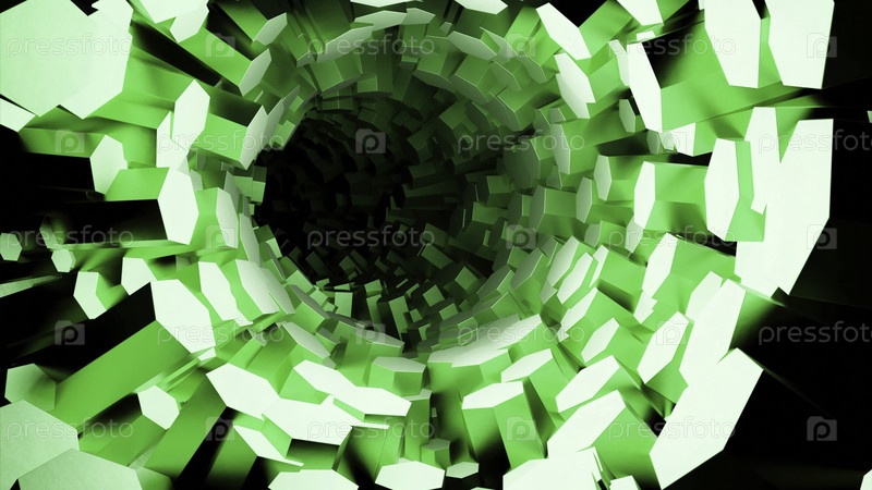 3D-тунел с деталями внутри. Дизайн. Цветные колонны образуют туннель. Туннель из кристаллов или колонны на черном фоне