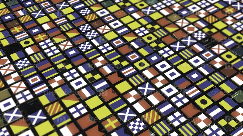 Абстрактные ряды флагов разных стран, текущие на черном фоне, бесшовная петля. иконки летящего флага, концепция сотрудничества и общения