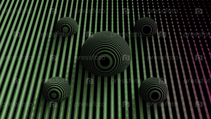 3D движущиеся шары на виртуальной поверхности Дизайн Кибернетическое поле с многоцветными линиями и шарами на поверхности Виртуальное поле с вращающимися пузырями и гипнотическим рисунком