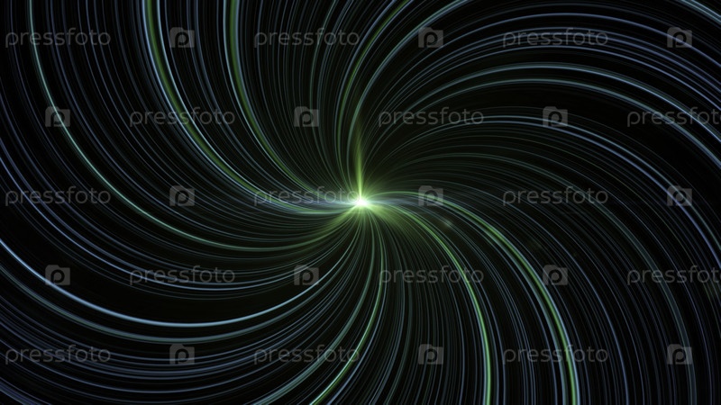 Цветная спираль с радужными изогнутыми линиями. Анимация. Тонкие изогнутые линии светятся и мерцают в спиралах. Красивая изысканная спиралка медленно движется на черном фоне
