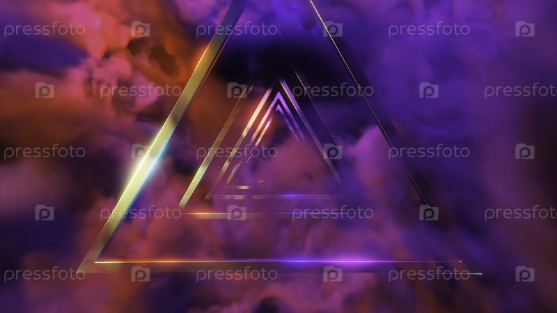 Тоннель из трехмерных треугольников и туманностей. Дизайн. Волшебный туннель с треугольниками и красочным туманом. Тунел из треугольников и красочного тумана в уме или виртуальном пространстве