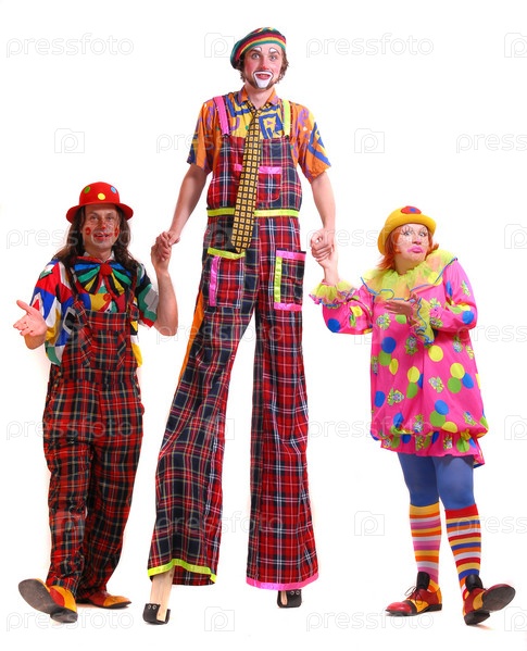 Клоуны, на белом фоне