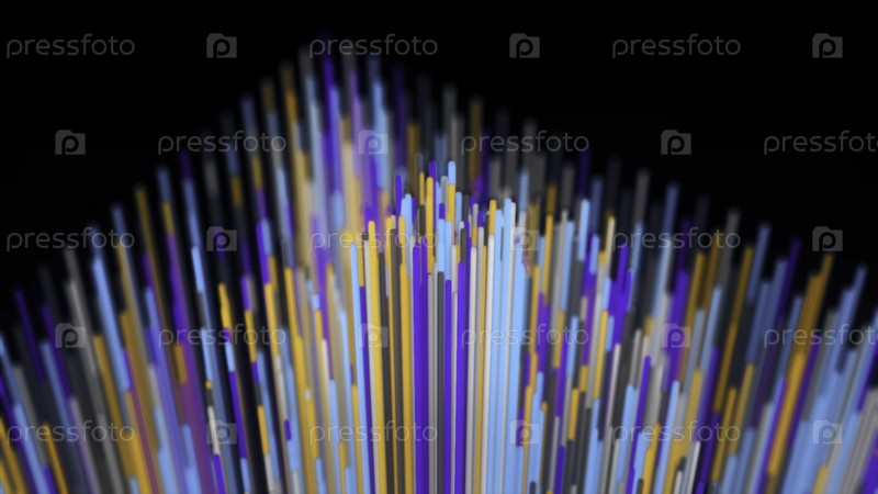 Абстрактные растущие и мигающие неоновые трубки, изолированные на черном фоне. Анимация. Близкий образ цветных узких вертикальных линий, движущихся вверх, концепция роста