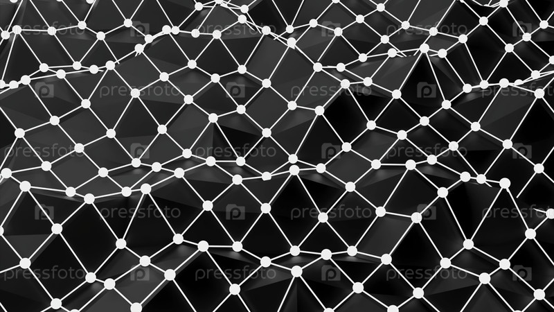 Поверхность сетки с волнообразными вибрациями поверхности. Дизайн. 3D-поверхность с вибрациями и волнистыми выпуклостями. Волны на поверхности с решеткой в киберпространстве
