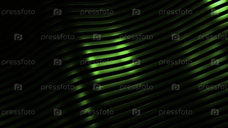 Полосатый фон с движущимися волнами. Дизайн. Красивые линии перемещаются в волны на черном фоне. Полосатые линии со шелковистой текстурой передвигаются в волнах