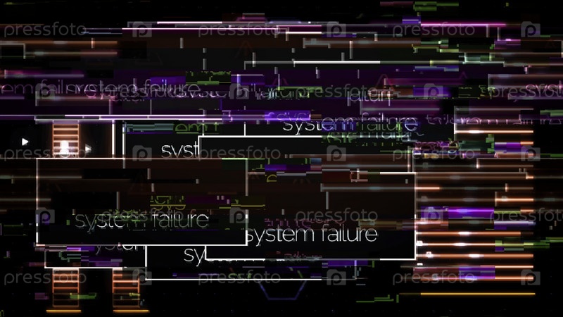 Программа на экране компьютера, прерванная сообщением о сбое в системе, концепция цифровой безопасности. Анимация. Интерференции сигнала и всплывающие окна на мониторе