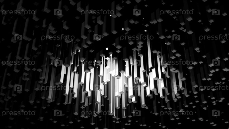 Абстрактные движущиеся геометрические формы сверху вниз Анимация 3D монохромные прямоугольные фигуры, растущие колонны на черном фоне