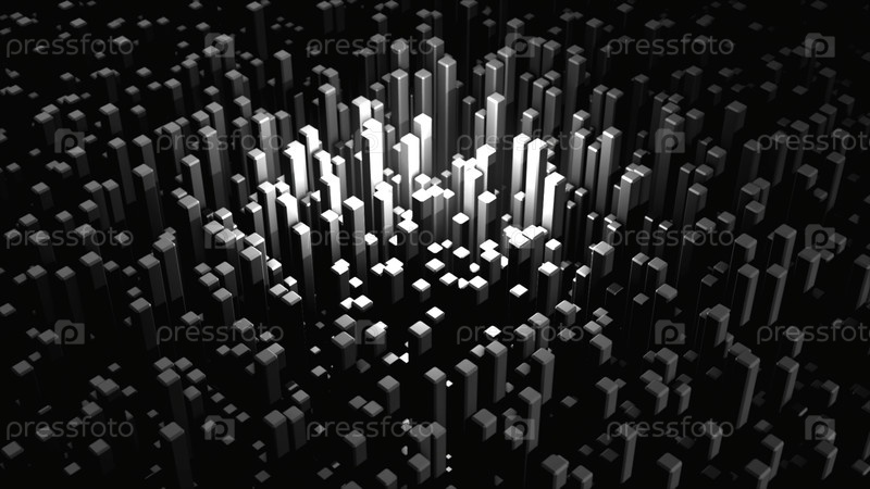Монохромная абстрактная анимация движущихся геометрических форм Абстрактный 3D рендеринговый фон, сделанный из прямоугольных фигур Современный спиральный анимационный фон