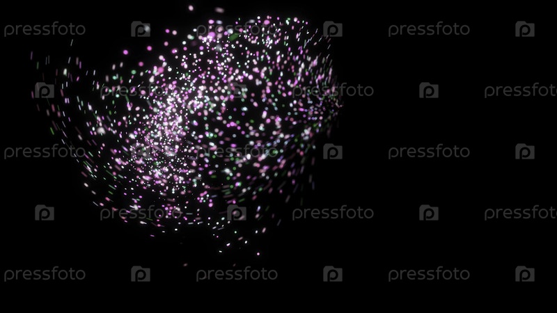 Комета конфетти на черном фоне. Анимация. Абстрактная анимация праздничного поезда с блестящими конфетами, движущихся как живая снежная буря на черном фоне. Праздничная магическая анимация