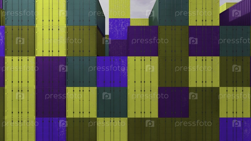 Фон многих красочных 3D грузовых контейнеров. Дизайн. Множество 3D-грузовых контейнеров в морском порту. Красивый фон больших грузовых контейнеров