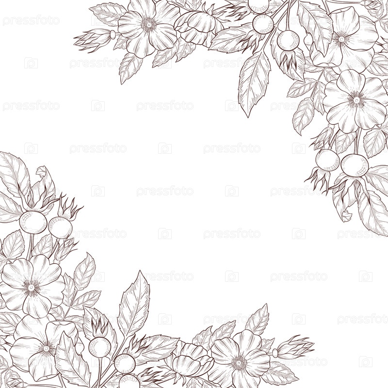 Иллюстрационный набор в черно-белом стиле гравировки чашки с чаем, чайника, листьев чая, чайного мешка и цветов розового хепа и ягод, подробная линия работы для упаковки, социальных сетей, меню