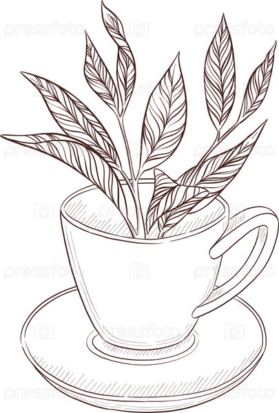 Иллюстрационный набор в черно-белом стиле гравировки чашки с чаем, чайника, листьев чая, чайного мешка и цветов розового хепа и ягод, подробная линия работы для упаковки, социальных сетей, меню
