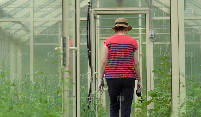 Фермер, вырубающий саженцы помидоров.Уход за саженцами в саду.Сельское хозяйство в теплице