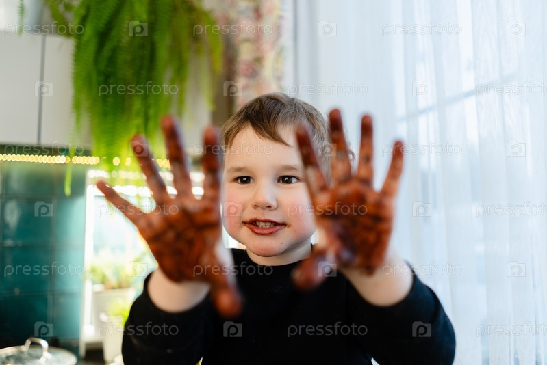 Малыш показывает шоколадные пальмы вперед
