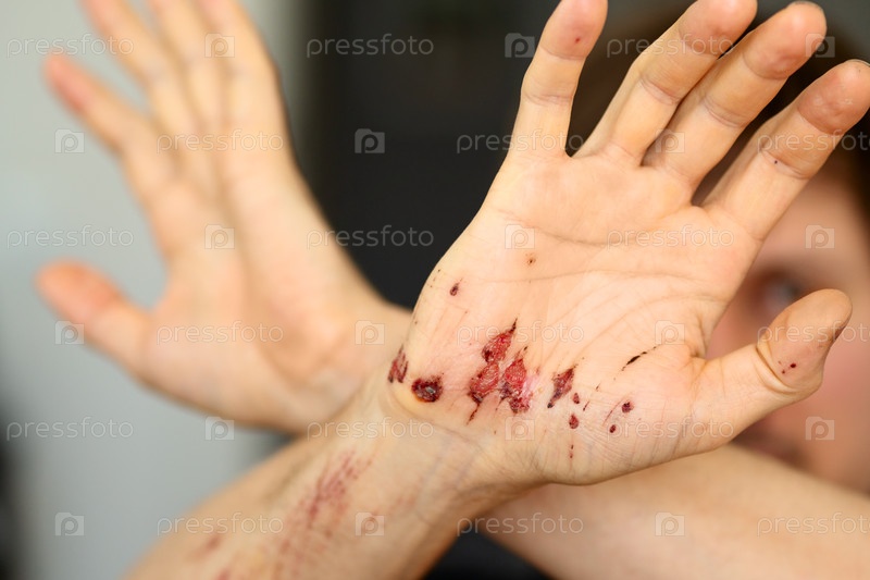 Осколки на ладони и царапины на правой руке взрослого мужчины