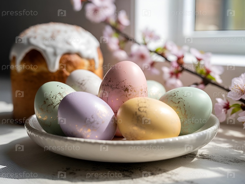 Натюрморт с пасхальными яйцами и куличом