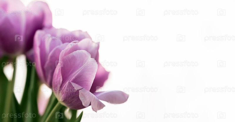 Букет фиолетовых цветов тюльпанов на белом фоне.Весенние цветки растения для дизайна поздравительных открыток