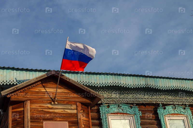 Флаг Российской Федерации на здании управления сельского поселения