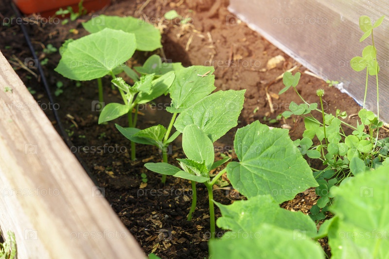 Рассада огурцов с клевером на грядке — органическое земледелие, сидераты, теплица, огород, весенняя посадка, эко-выращивание овощей