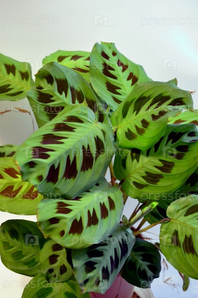 Комнатное растение-маранта на светлом фоне
