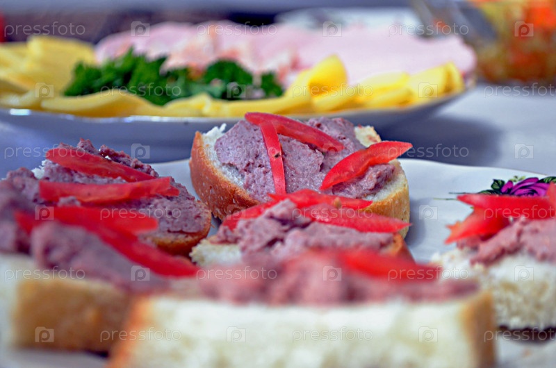 Закуски и бутерброды на столе