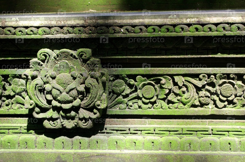Традиционный индонезийский рисунок на старом камне, покрытом мхом