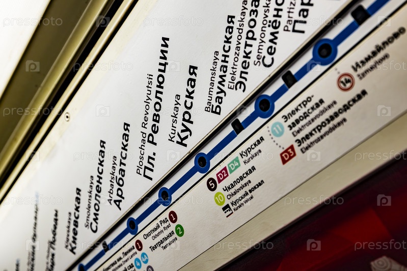 Фрагмент схемы Московского метрополитена с названиями станций и пересадками