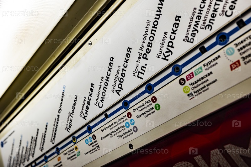 Фрагмент схемы Московского метрополитена с названиями станций и пересадками