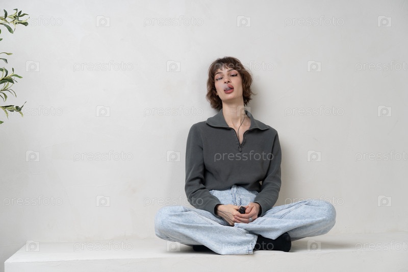 Красивая молодая женщина позирует в студии