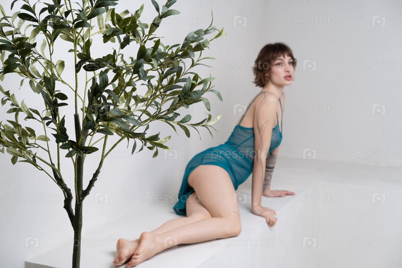 Красивая молодая женщина позирует в студии