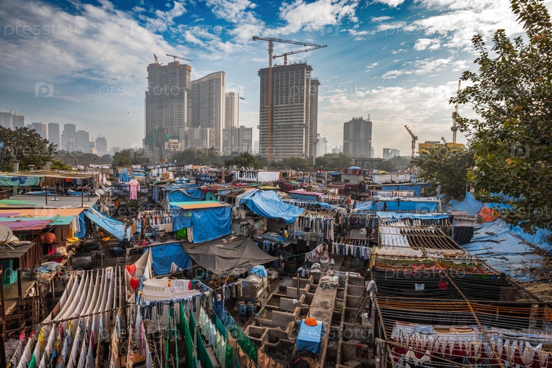 Контраст небоскребов Мумбаи и прачечной Dhobi Ghat