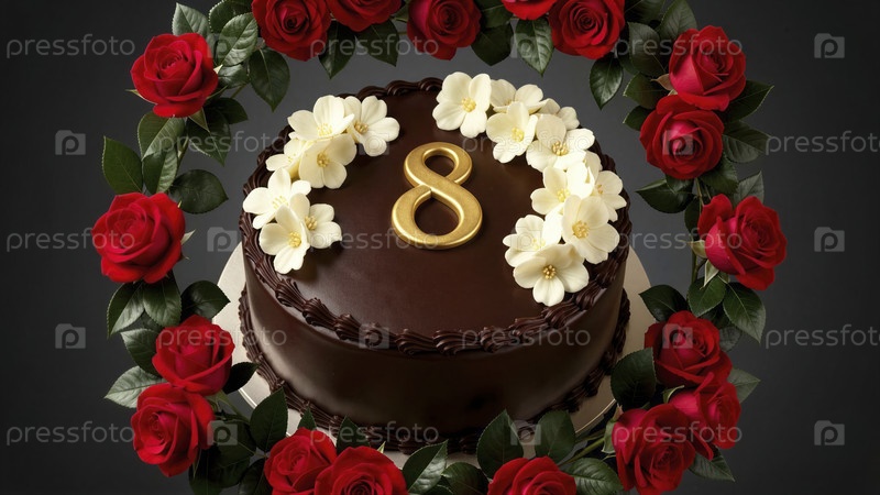 Шоколадный торт с красными розами на 8-ю годовщину