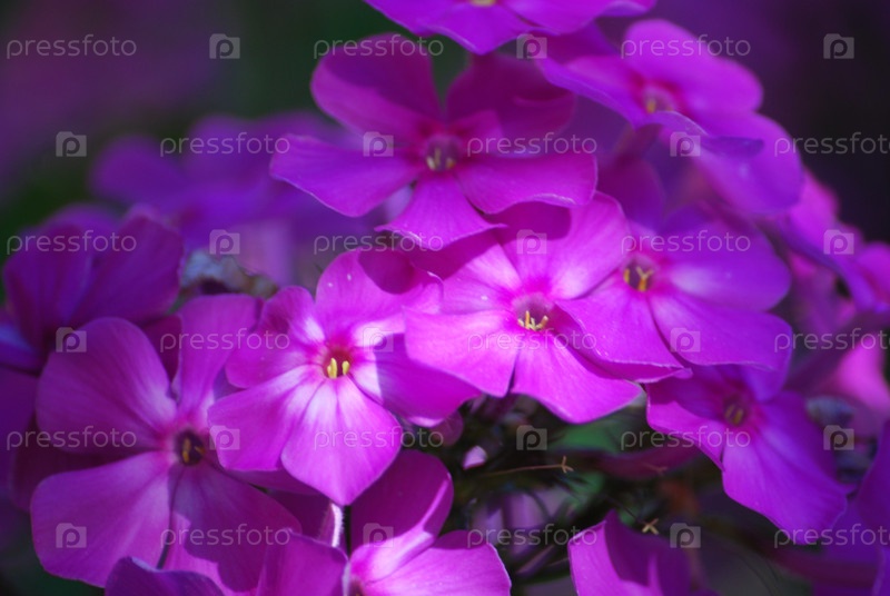 Розовый флокс в саду. Маленькие розовые цветы выросли и расцвели на длинном зеленом стебле. У них пять трапецинообразных лепестков. Лепестки слегка белые ближе к центру, а пистили желтые