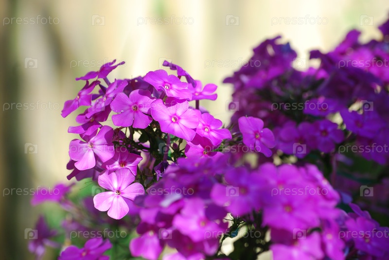 Розовый флокс в саду. Маленькие розовые цветы выросли и расцвели на длинном зеленом стебле. У них пять трапецинообразных лепестков. Лепестки слегка белые ближе к центру, а пистили желтые