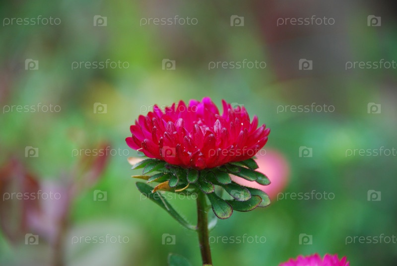 Красный астер на стебле.Цветок относится к роду травянистых растений семейства Asteraceae или Compositae.У него много тонких длинных красных листьев, растущих в кругу.И длинное тонкое зеленое стволо