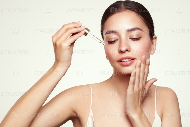 Молодая красивая женщина наносит сыворотку для лица