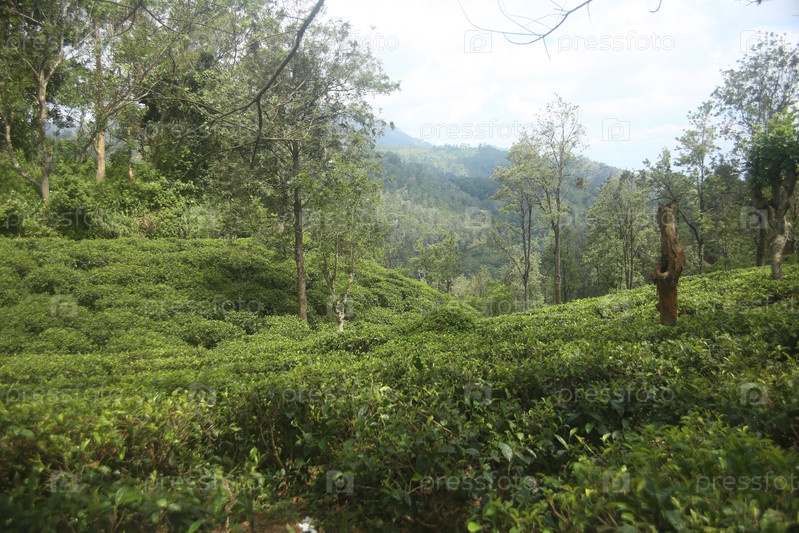 Пейзаж с видом на деревья, зеленые растения и синее небо