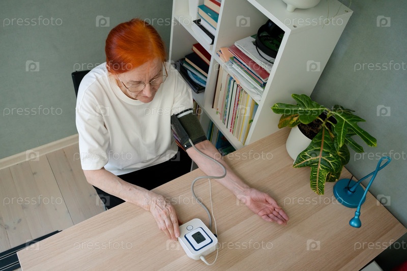 Пожилая женщина заинтересованная побочный профиль кровяное давление