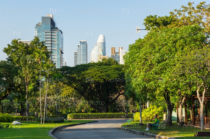 Бангкокский городской пейзаж из парка Лумпини