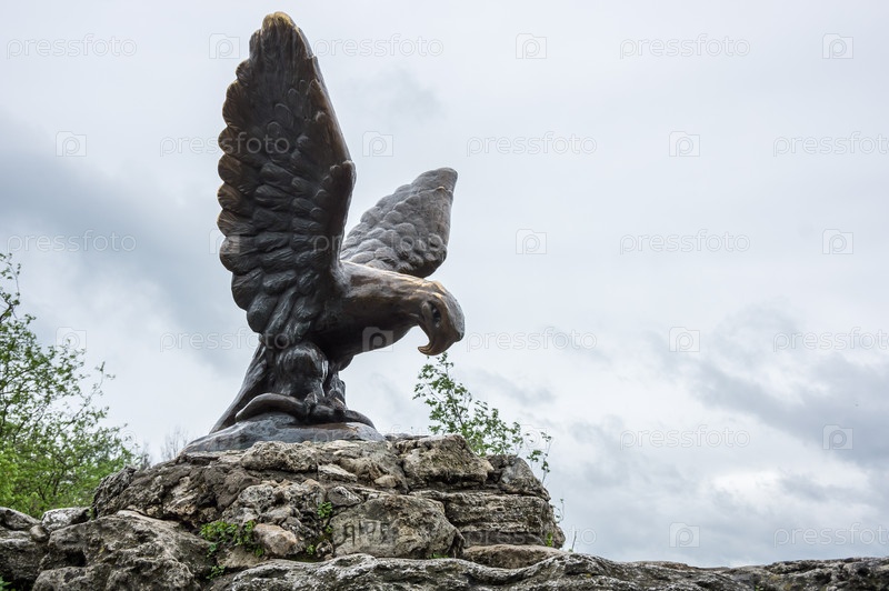 Бронзовая скульптура орла, борющегося со змеей на горе Машук