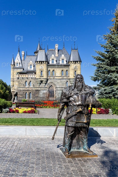 Вид на статую средневекового рыцаря перед замком Гарибальди