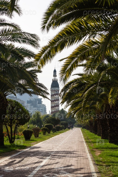 Вид на велосипедную дорожку вдоль красивого прибрежного побережья в Батуми, Грузия