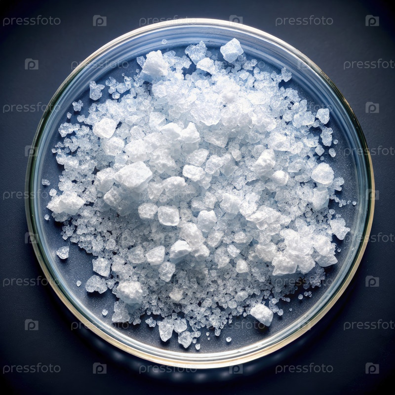 Кристаллы соли натрия в чашке Петри, рассматриваемые сверху