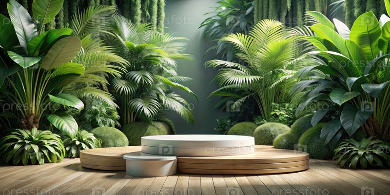 Роскошный зеленый подиум, окруженный тропическими растениями
