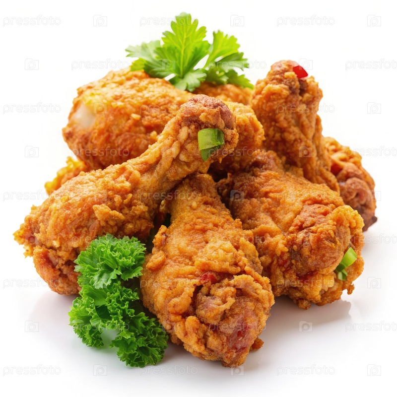 Хрустящие жареные куриные барабаны с фаршированным персиком. генеративный ИИ