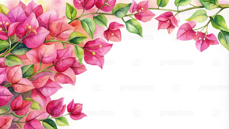 Водяной цвет Бугенвиллиа граница на белом фоне